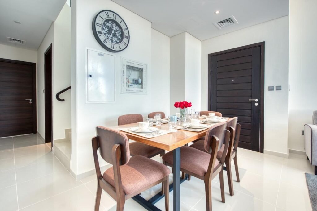 A beautifully furnished 3-bedroom townhouse with a dedicated maids room, located in the after—Pacifica Cluster of Damac Hills 2. This corner unit offers excellent privacy, spacious interiors, and modern finishing—perfect for families and investors looking for a premium property in a thriving community.
